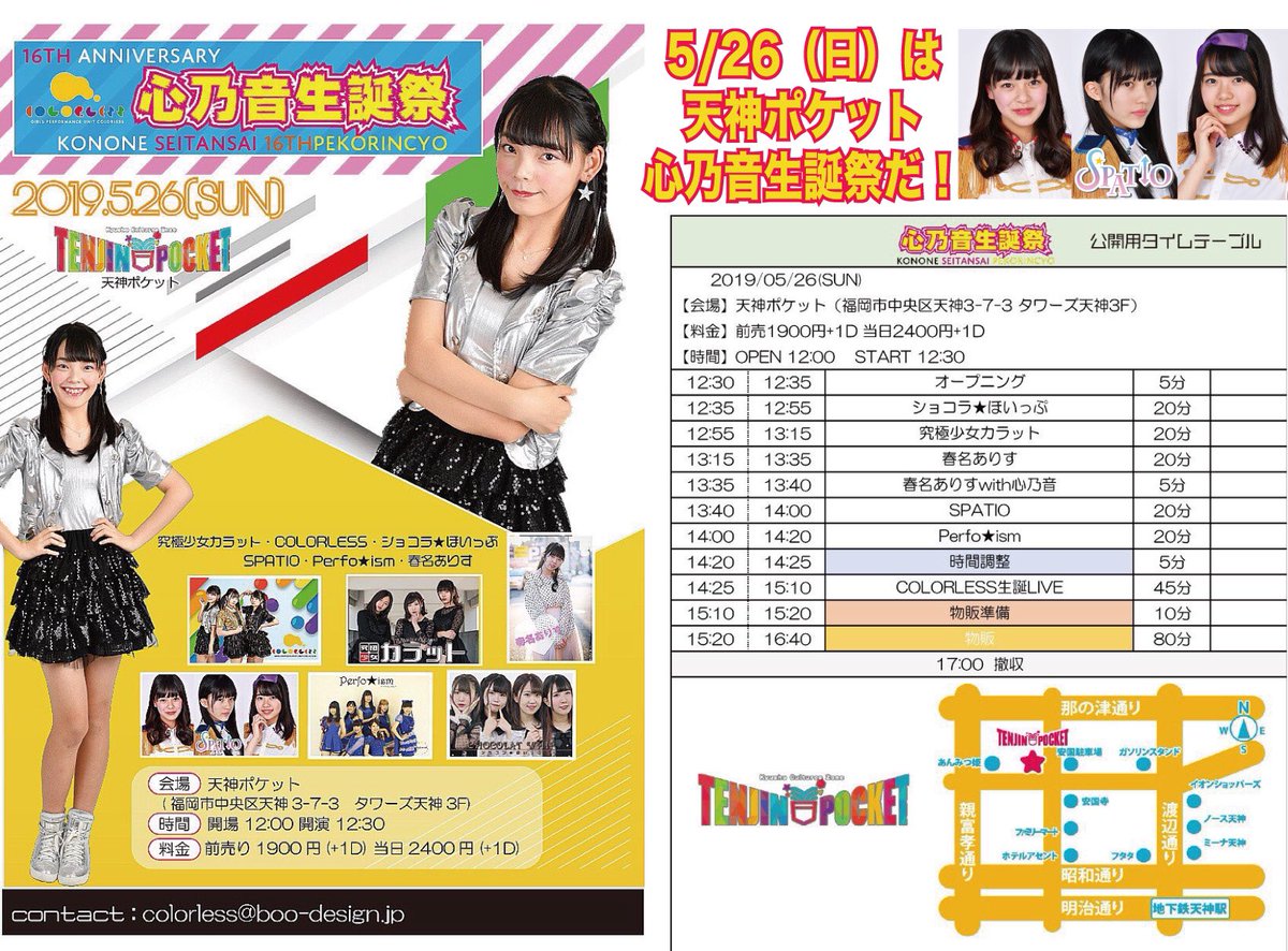 【🎂心乃音生誕祭🎂】 5月26日(日曜日) 心乃音生誕祭16thぺこりんちょ! 【会場】天神ポケット 【料金】前売1900円 当日2400円+1D 【時間】OPEN 12:00 START 12:30 チケット🎫お取置き… https://t.co/sQYWOuAPve