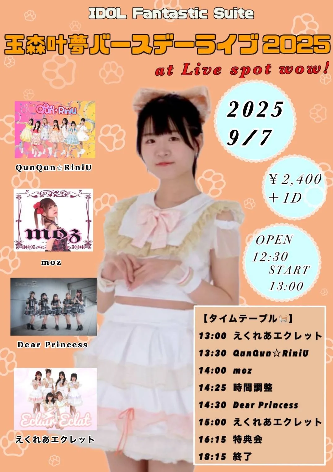 ◇出演:UMATENA , QunQun☆RiniU , Lit★V , Dear Princess , ex.もふる×クロス福岡(2部のみ)